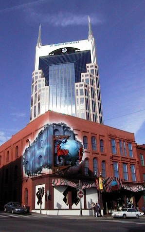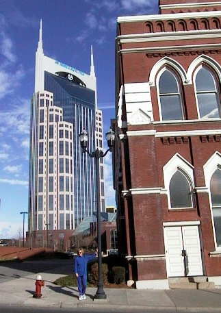 Explored downtown Nashville, around Broadway and Second (alleged to be the hotspot for nightlife, etc). Main sights there are the BellSouth Tower (looks like Batman, doesn't it?), the Rymal Auditorium (which is the original Grand Ole Opry until they built a new one at the Opryland Hotel), Planet Hollywood, the NASCAR Cafe, Hard Rock Cafe, and lots of old bars where unknowns perform trying to get 'the big break'.