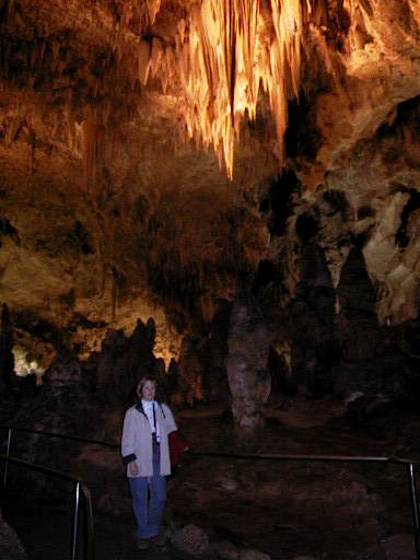 Stayed overnight in Mt Pleasant, Texas and then drove all day across the state to Carlsbad, New Mexico and changed clocks to Mountain Time. The Carlsbad Caverns seemed to be a worthy detour as the pictures we had seen were quite spectacular. Arrived very late after 13 hours driving in the Texas winds, being constantly buffeted by trucks and crosswinds. Sandy's getting expert at this trailering thing now. We switch drivers every two hours and she always seems to get the bad parts - she drove through Dallas-Fort Worth with endless road works and lane closures. At least she could now get a part-time job driving trucks!