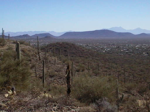 Another clear blue sky with temperatures forecast in high 60's. Tucson gets 350 days of sunshine a year so this statement might get redundant! Had our first bike ride in the desert today. The saguaro (saw-war-roe) cactus are everywhere here - apparently they only grow in the Sonora Desert and are very old. They are fifty years old before they start branching.