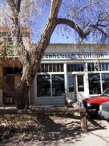 This is the "Hanging Tree" outside the Tombstone Epitaph Newspaper. The guide claims they really did hang people here.