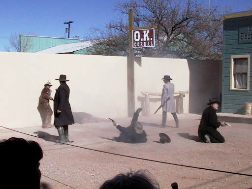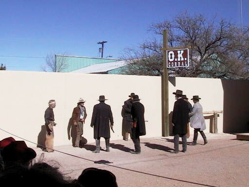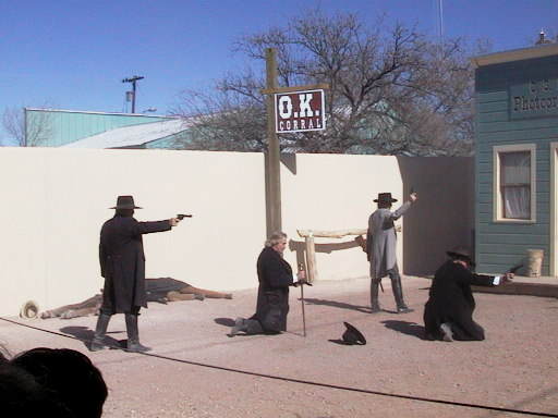 The OK Corral was next on the "cannot miss" attractions. Unfortunately, the re-enactment show they put was aimed at kids but we sat through for the sake of history. The gunfight seemed to be a simple confrontation of the bad guys and the Earps when the Earps asked them to turn in their guns (where weren't allowed in Tombstone then). Don't know how they made a two hour movie out of that.