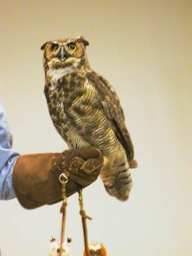 Saw-whet with a broken wing and a big Horned Owl that was almost blind