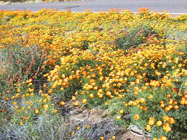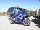 Had an interesting ride on Saturday and felt I was in the middle of a "Cops" TV show. I was heading through the Aqua Dolce Ranch in the Waterman Mountains when I stopped to open a gate that's normally always open. I noticed a couple of police trucks pulled back off the road under some trees. I went over to chat to them (when you are in the middle of nowhere and haven't seen any one for a couple of hours you sort of feel obligated to go over and say "Hello"). I asked them why they were out in such an untravelled area and they said this back road gets used by smugglers, and that's why they had the gate closed.. Well, wouldn't you just guess, at that moment two trucks come barrelling down the track and skid to a halt at the gate, spot then Police trucks and try to do a quick escape. The police trucks go charging out and try to surround them. The occupants of the first truck take off into the desert with the police, guns drawn, ordering them to stop. The other police truck is chasing the other guys through the desert, smashing down cactus, trees, etc. I'm just about to whip out the camera when I wonder if the smugglers have guns and a shootout is about to start. Time to fire up the bike and get out of there FAST !!!