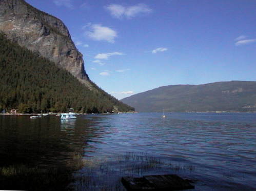 on the patio by Slocan Lake, and then booked into Swan Lake Resort in Vernon,