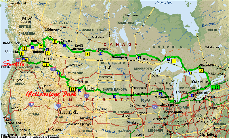To check our route back home, see the Vancouver - Toronto section of the full map