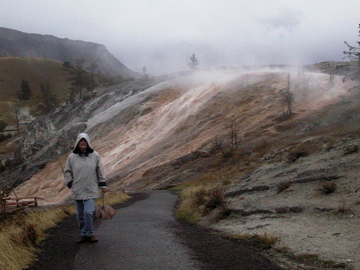 mud holes, steaming springs, multi-coloured ponds, and finally Old Faithful