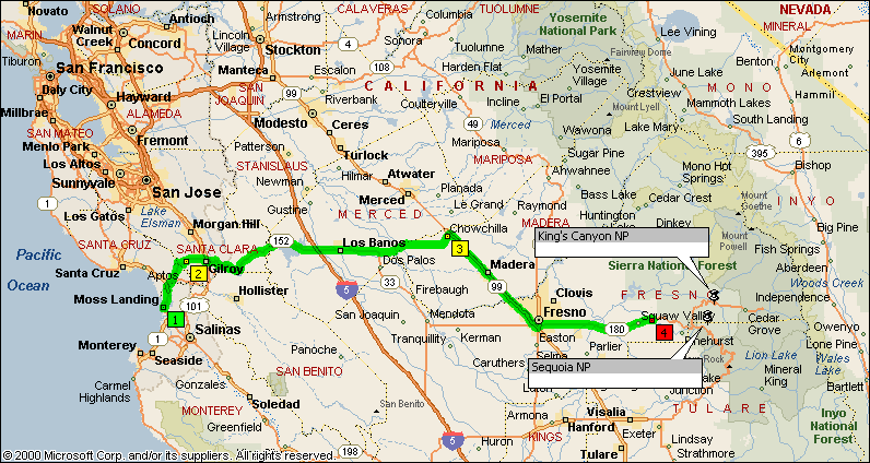 Sept 28 - Oct 1, 2003 After two weeks on the Pacific coast, we left Monterey and headed inland