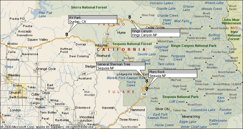 Rock and Hwy 198. Moro Rock gives a great 360 degree view after a