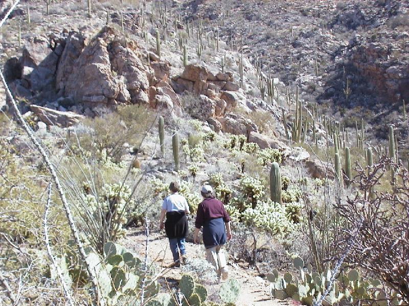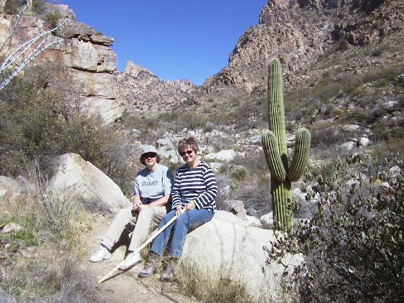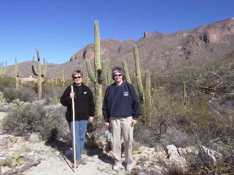 Sandy's friend Carol (from Oakville Humane Society) was taking a golf vacation with her friend, Carole, at the Hilton El Conquistador in Tucson, and wanted an experienced guide to show them around Tucson.  When they couldn't find anyone in their price range, we got the job!  It was great to see friends from home but we ended up spending more time in their hotel hot-tub and at restaurants than actually sight-seeing. We managed to fit in a couple of nice hikes in the Santa Catalina mountains, a visit to Gate's Pass for sunset, and a last-night-out at the Hidden Valley Inn dinner theatre to see The Sons of the Pioneers.