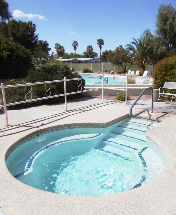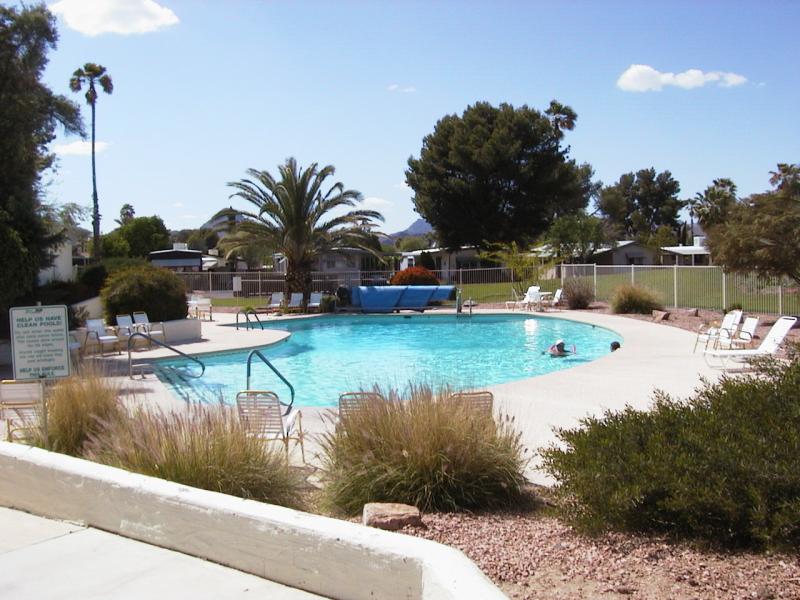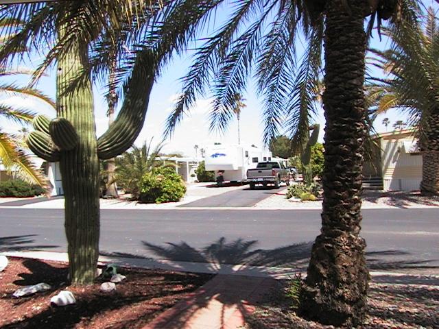 After a few weeks we realized it wasn't the same as on our previous visits, so when we heardabout another RV park, Desert Peublo, that may be more suitable we quickly checked it out, found it to be perfect for us and moved there as soon as our pre-paid rent expired.  We liked the new park as we had lots of space on our site, as well as palm trees andfruit-laden trees, large cedars full of birds and a little bunny living under the home on the next site!  The park was primarily for manufactured homes and allowed RV's on any unsold lots, so it had really nice facilities, like two clubhouses, pools and hot tubs, and was nicely landscaped as many of the homes had people living there year-round as well as many snowbirds.